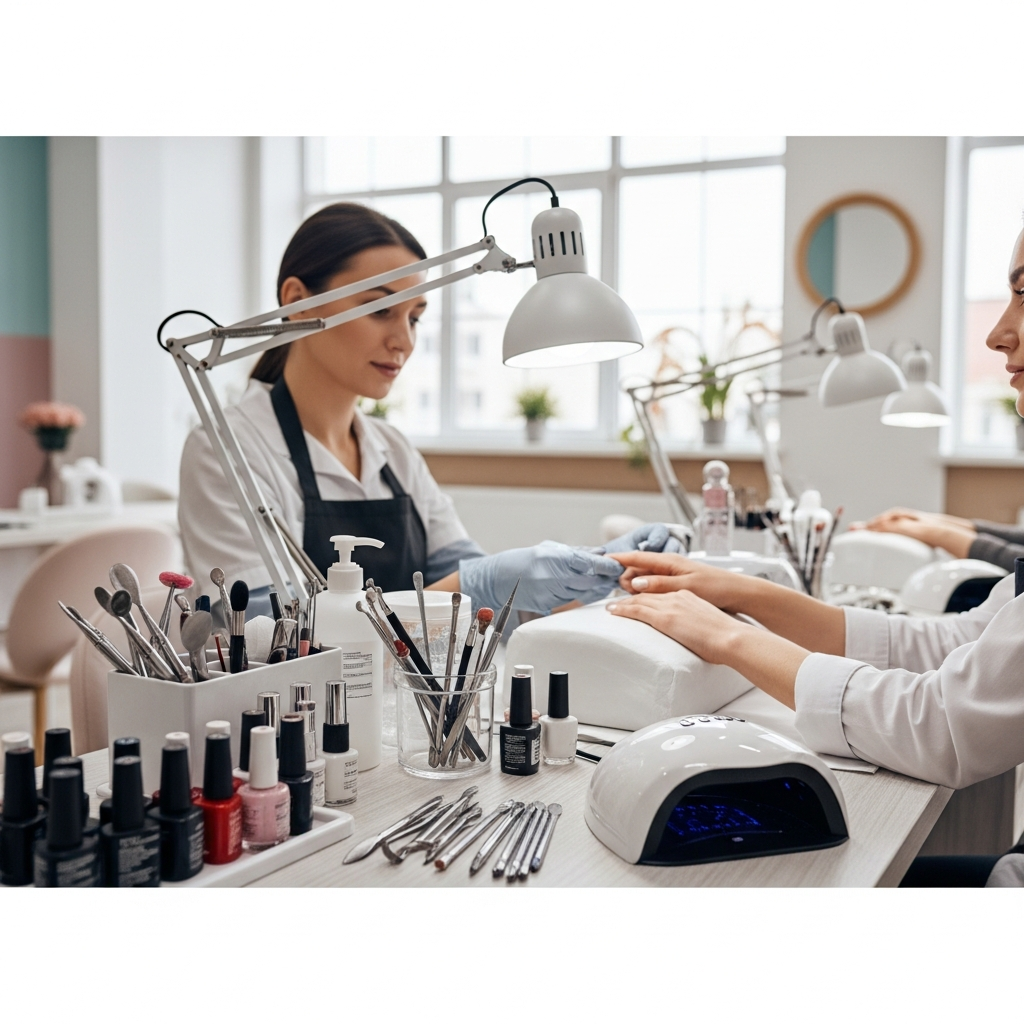 A clean, organized, and professional atmosphere reinforces the premium nature of the nail services provided.