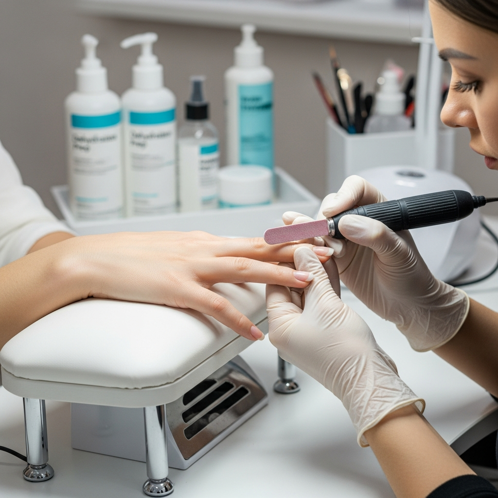 Proper mechanical preparation is the first step in ensuring product adhesion. Technicians must use a 180-grit file or a fine-grit e-file bit to gently remove the shine from the entire nail surface.