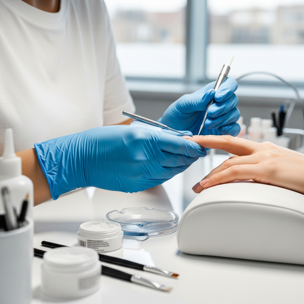 Using a high-quality dehydrator and professional-grade primer ensures a clean surface for the acrylic to bond effectively to the keratin of the nail plate.