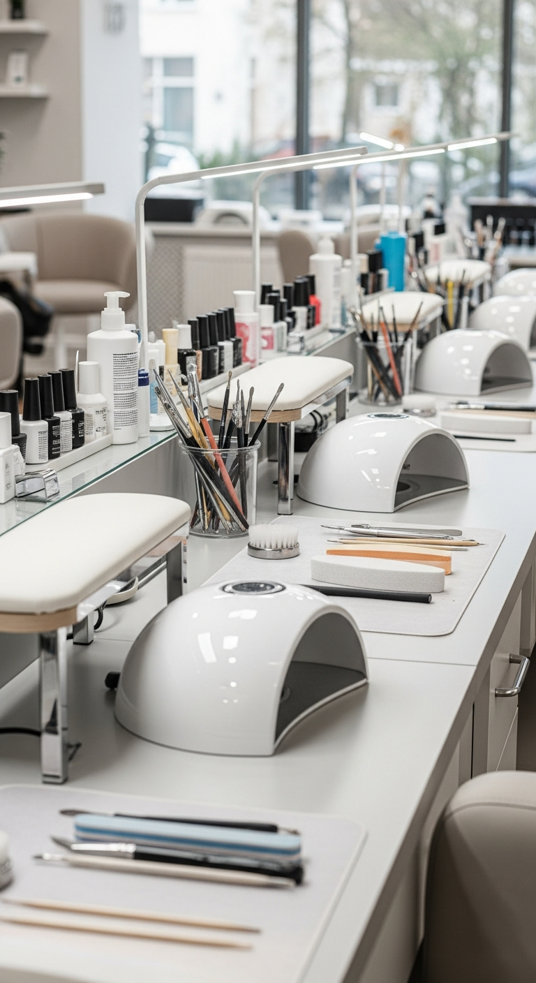 A clean, organized environment reinforces the professional reputation of the nail salon.