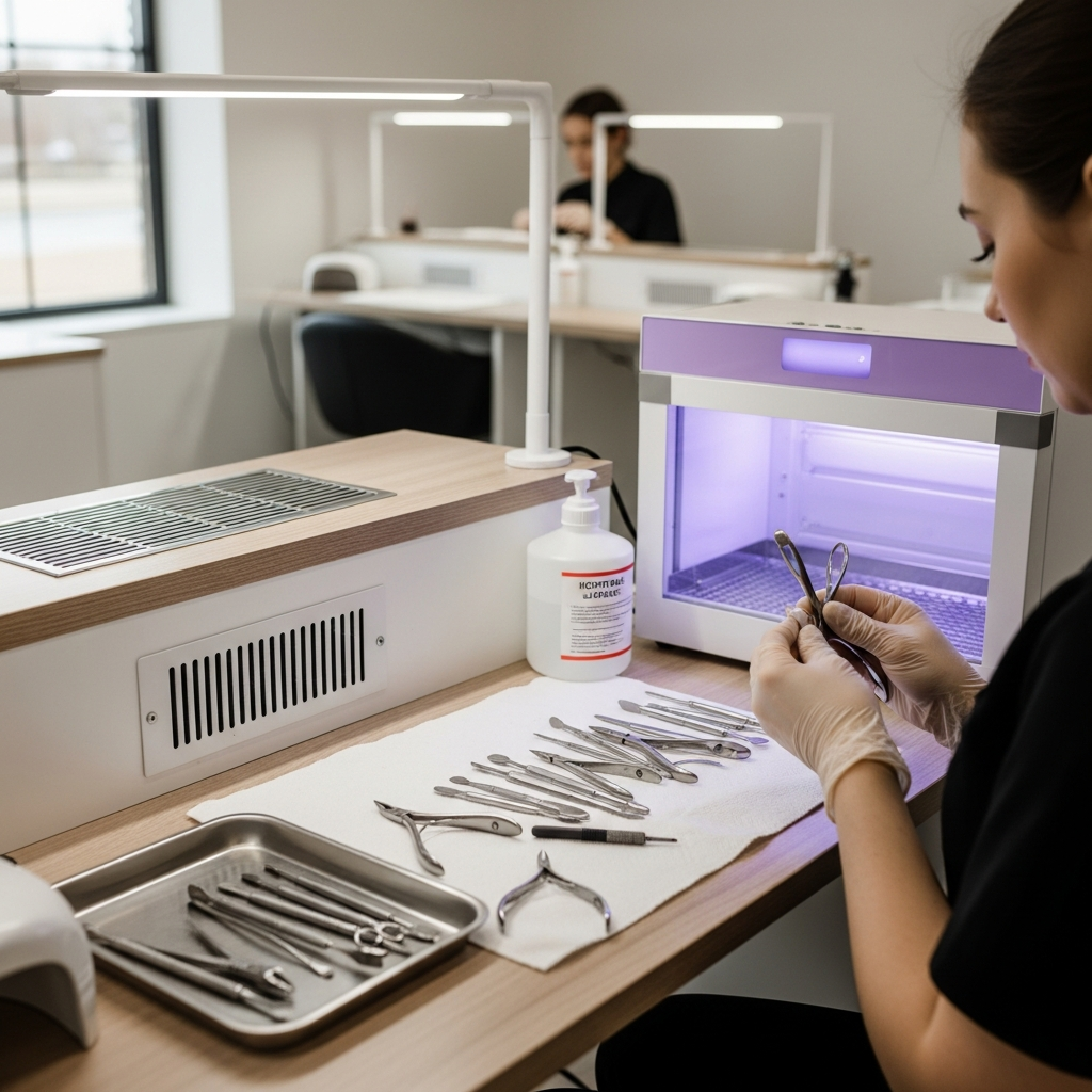 Properly disinfecting nail clippers, pushers, and drill bits is vital. Use hospital-grade disinfectants approved for the nail industry.